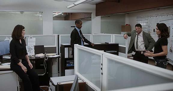 Police station briefing: Amy Motta, Tim Russ, Heath Centazzo, Michelle Lukes.